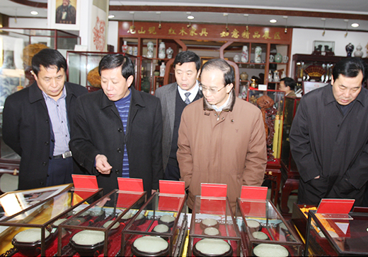 慶安、曲阜市文化局局長孔祥金的陪同下來金龍閣藝術品公司視察工作。